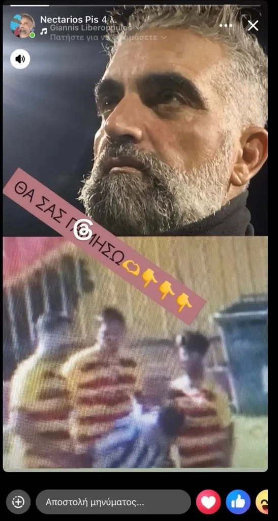 Κοινοποιώ στον εν λόγο «κύριο» ότι εάν δεν σταματήσει τις απειλές και τις προσωπικές επιθέσεις προς εμένα και των συμπαικτών μου τα πράγματα θα επιλυθούν δια της νομικής οδού με αποδεικτικά στοιχεία!!!