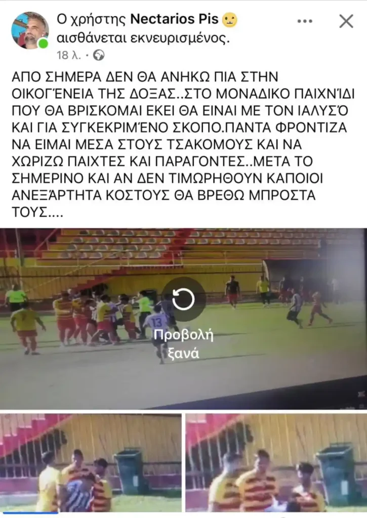 Για την ομαλή διεξαγωγή του πρωταθλήματος και για την αποφυγη τυχών περιστατικών σε μελλοντικούς αγώνες κάνω δημόσια αναφορά στην ΕΠΣ Δωδεκανήσου να επιληφθεί επι του θέματος.