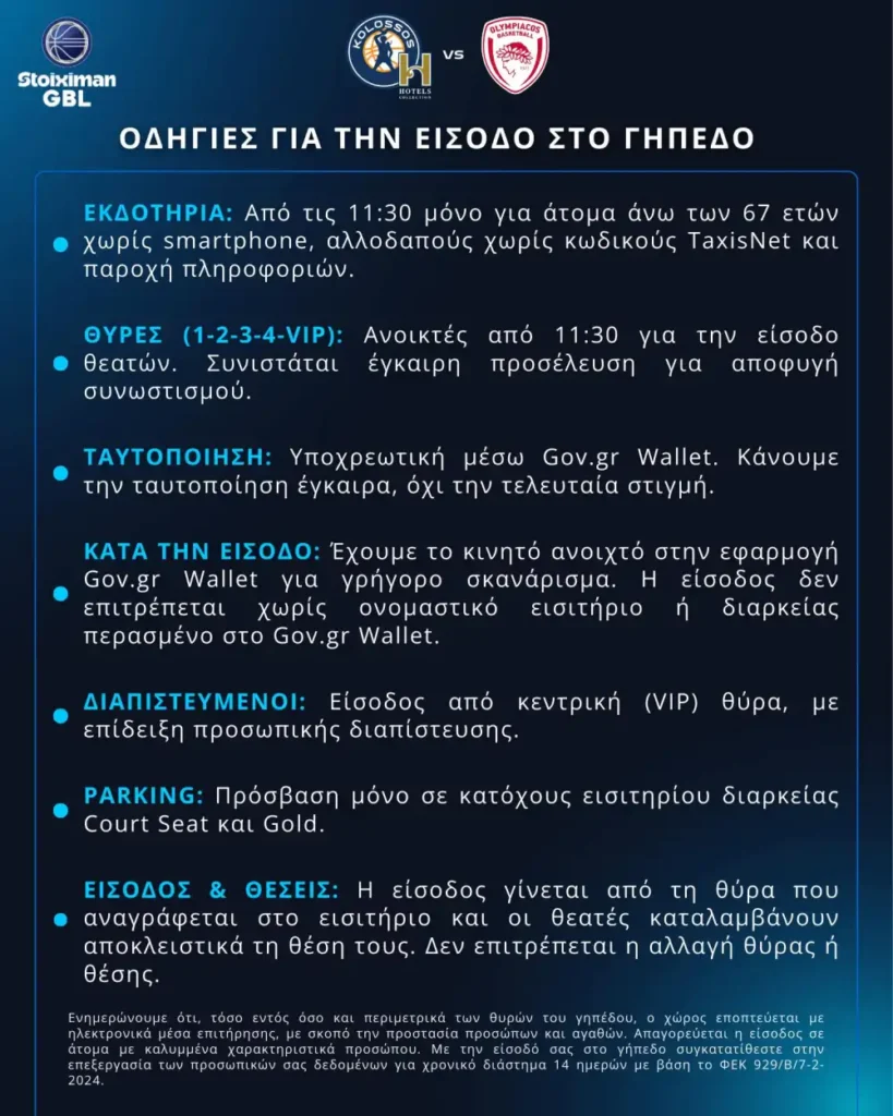 - Οι οδηγίες του Κολοσσού Ρόδου για το παιχνίδι με Ολυμπιακό